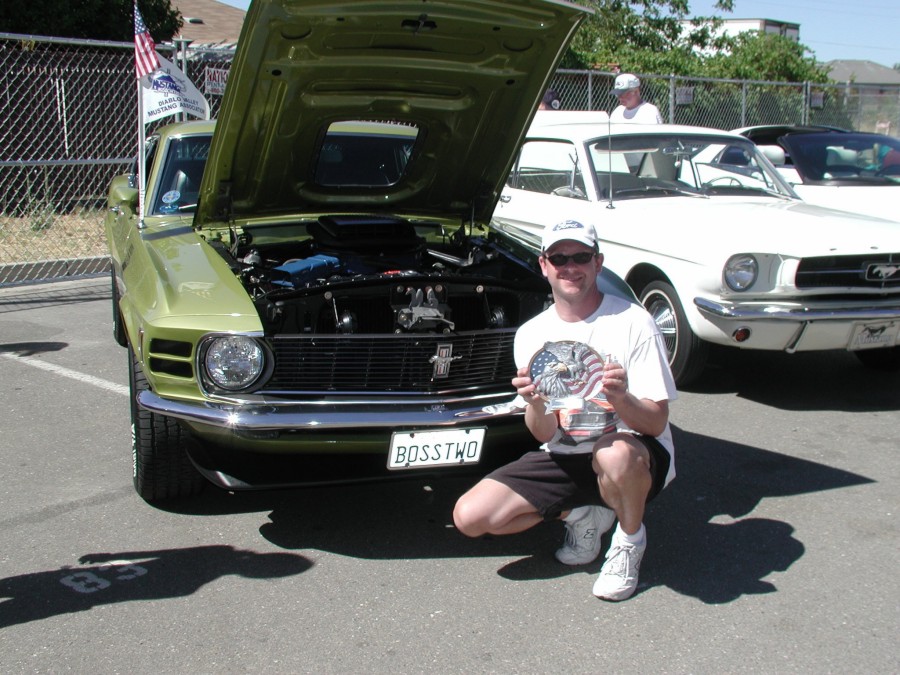 Fun Ford Sunday, 2003. Sitting in the sun with the whole reason why these street cars existed in the first place... #15 Parnelli Jones' 1970 T/A winning Boss 302