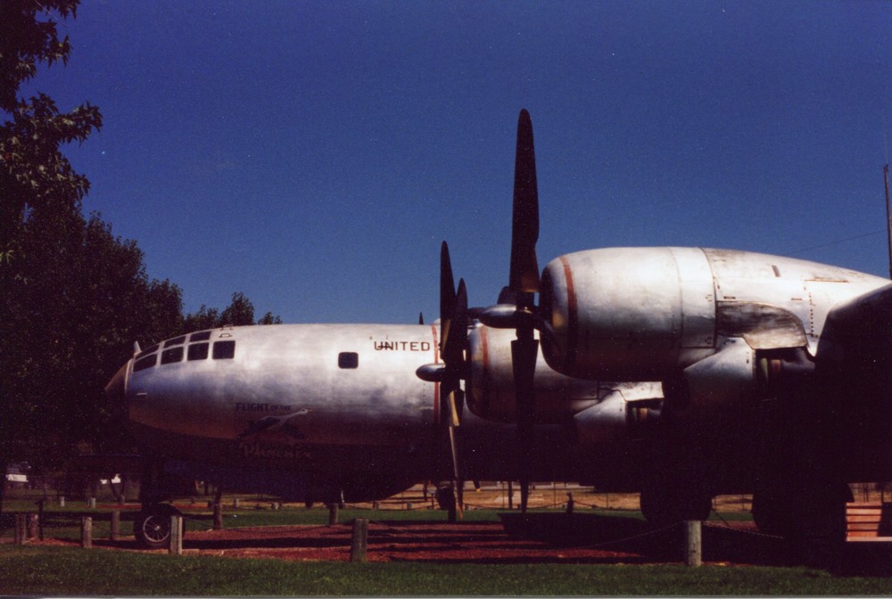 Bryan and I under one of the engines of a B-29 Superfortress, Castle Air Museum