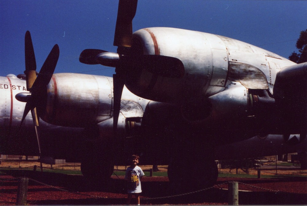 Bryan under #1 engine of a B-50 Stratofortress at Castle Air Museum